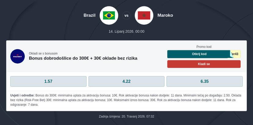 6.1 ⭐ Tko je favorit za pobjedu u utakmici Brazil - Maroko?