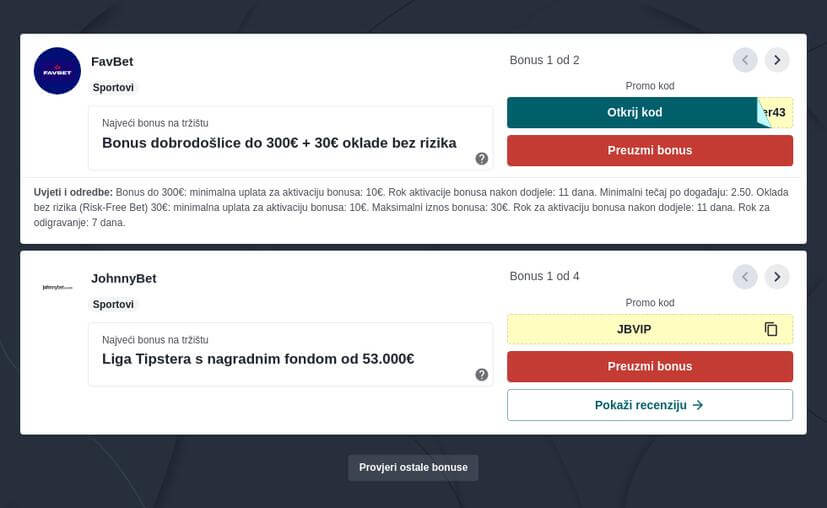 Bonus dobrodošlice do 300€ + 30€ oklade bez rizika